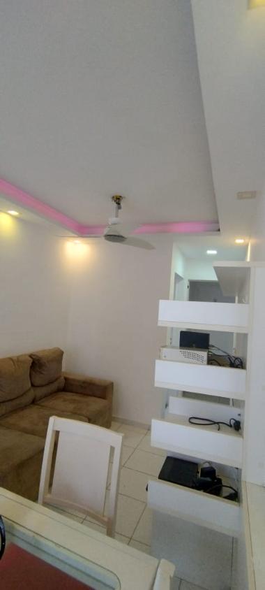 Área de lazer com: Salão de Jogos, salão de festas, espaço gourmet, playground e portaria 24 horas. MOBILIADO com planejado em todos os cômodos, sofá grande, varanda com cortinas e tela de proteção, ventiladores de teto, fogão, geladeira, mesa e cadeiras, chuveiro, luz de led.