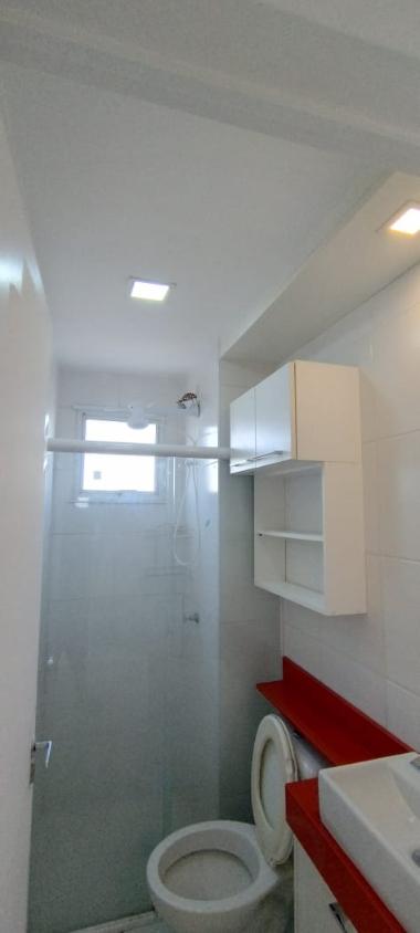 Apartamento de 46m² sendo 2 dormitórios, sala, cozinha, lavanderia, banheiro, varanda.